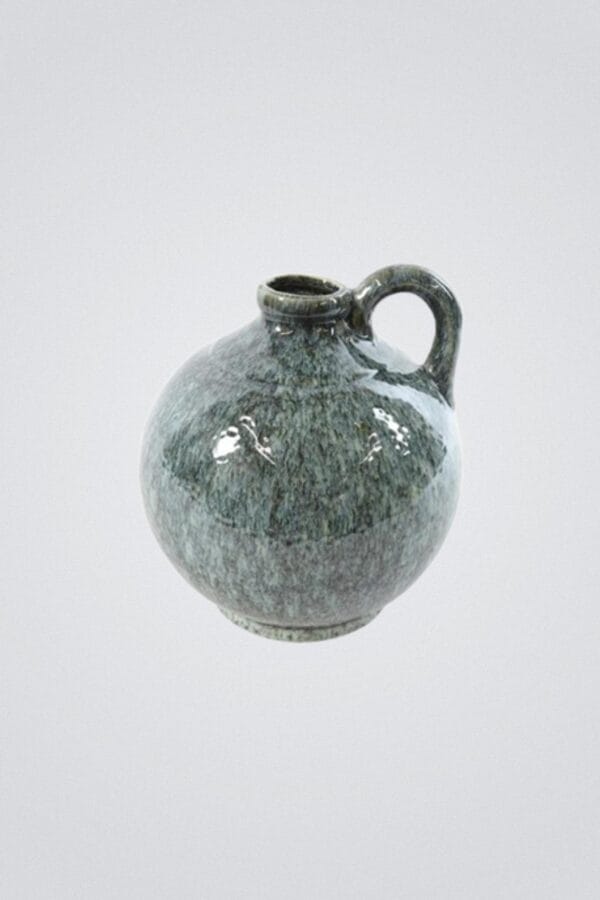Esta bilha cerâmica rústica com asa é uma homenagem à tradição artesanal portuguesa, mas reinventada para ambientes modernos. Além disso, combina tons mesclados em azul – do índigo ao celeste – com uma asa robusta, inspirando-se nas antigas bilhas de água. Com 22.5x25cm, é perfeita para decoração campestre portuguesa, embora também se adapte a espaços urbanos que buscam um toque rústico.