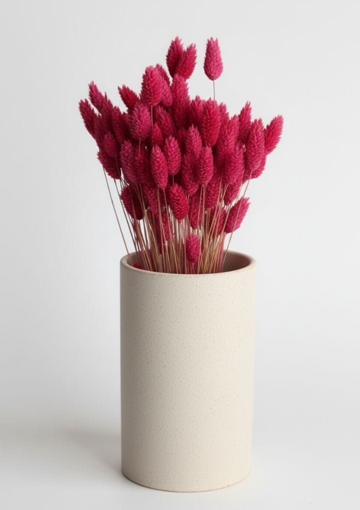 - Sobre o Produto – Mais do que simples peças de decoração, as nossas flores secas Phalaris são uma afirmação de estilo de vida. Com a sua textura singular e cor bordeaux, adicionam um toque romântico a qualquer espaço.