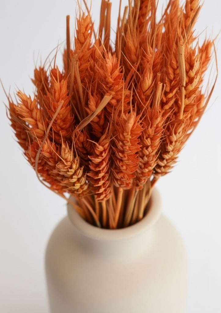 O trigo natural laranja compõe centros de mesa, ramos secos ou detalhes artesanais e, igualmente, traz um toque campestre a qualquer canto da casa. Mais do que um simples elemento decorativo, simboliza abundância, renovação e ligação ao campo.